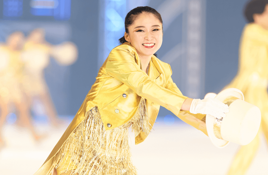 40 周年を迎える年の公演で、クライマックスに「From Now On」というナンバーがありました。静かなミュージック・ボーカルの中で小林宏一キャプテンがひとりで滑り出すところから始まり、続いて先輩方、その次、とリンクインしていきます。全員が集まったところで次第に音楽にリズムが入っていき、全員でのダンサブルな振り付け、高難度エレメンツと、盛り上がりが最高潮になった瞬間にバックフリップを披露。最後には全員で長い2列を作り、「道」のように縦に照明が灯され、その道をひとりずつ滑っていくラストで締めくくります。40 年という節目の年でありながら、「ここから始まる」という意味の込められたナンバーでは、未来への固い決意が表現されており、会場の盛り上がりと一体感はひときわ大きく、最高の感動体験をお届けできたと感じました。来たる 50 周年の年に向けて、チームの団結を深めてこの思いをさらに強いものにしていけたらと思っています。